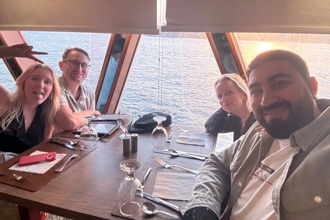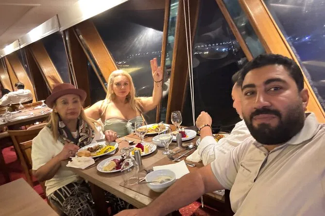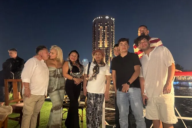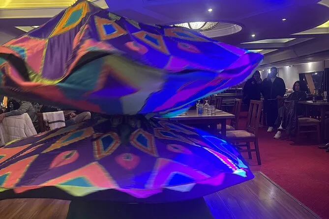 La crociera non era niente di pacchiano o turistico, sembrava più un momento per rilassarsi dopo una giornata intensa. Abbiamo navigato accanto alla Torre del Cairo e a quei vecchi palazzi lungo le rive, tutti illuminati di una luce dorata. Ahmed ci ha fatto notare alcuni ponti che non avevo mai visto prima. A un certo punto una coppia vicino a noi si è messa a ridere perché il loro bambino cercava di imitare i movimenti della ballerina del ventre (lei se n’è accorta e ha fatto l’occhiolino). Non mi aspettavo di godermi così tanto lo spettacolo Tanoura — quei colori che girano ipnotizzano davvero, non scherzo.