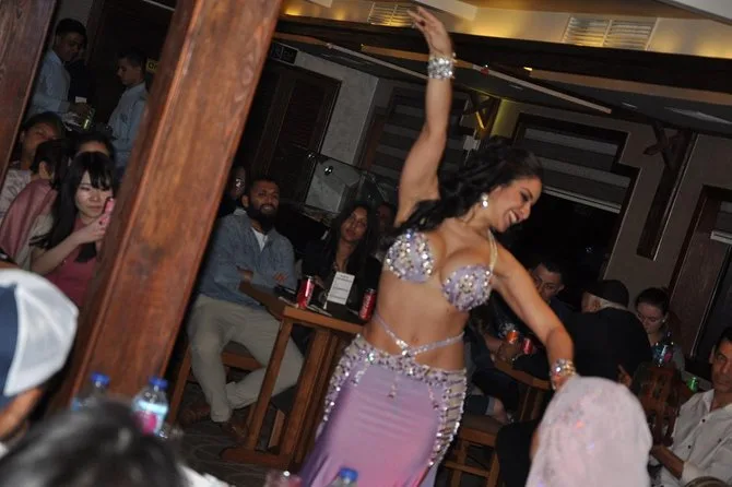 La guida ci ha indicato un tavolo vicino al finestrino e ci ha consigliato di iniziare con il koshari (“è un piatto caotico, ma buonissimo”). Il buffet era un mix di sapori familiari e altri sconosciuti — ancora non so cosa fosse quel sottaceto, ma aveva un bel pizzico. La band dal vivo ha iniziato proprio mentre ci sedevamo, con un pezzo lento e avvolgente che faceva abbassare la voce per parlare. Quando è uscita la danzatrice del ventre, ha fatto l’occhiolino a un bambino a due tavoli di distanza, che è diventato subito rosso come un peperone. Durante la danza Tannoura, quelle gonne roteanti sembravano quasi irreali — come se potessero sollevarsi e volare via nella notte.