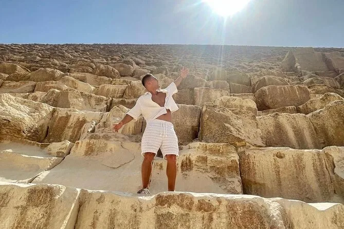 Potrai avvicinarti alle Piramidi di Giza, toccare pietre millenarie, salire per una vista mozzafiato sopra la foschia del Cairo e restare sotto lo sguardo vigile della Sfinge. Con una guida egittologa locale (e il pranzo incluso), ogni attimo diventa unico — mentre la storia ti sovrasta.