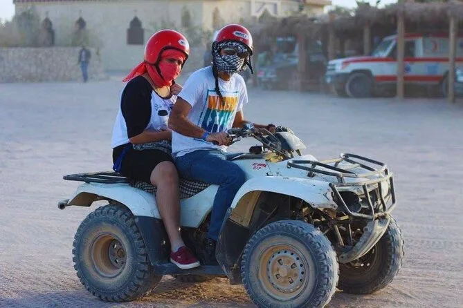 La prima cosa che ho notato dopo il pick-up in hotel a Sharm El Sheikh è stato il silenzio—un silenzio vero, da deserto—quando siamo scesi al centro safari. La nostra guida, Ahmed, mi ha dato il casco e ha sorriso quando ho fatto un po’ di fatica con la fibbia (me l’ha sistemata in due secondi). I quad erano molto più potenti di quanto immaginassi. Dopo una breve spiegazione sulle norme di sicurezza—niente di complicato, solo cose chiare—siamo partiti nel deserto del Sinai. Sabbia ovunque, ma anche qualche macchia di verde e capre che sembravano non curarsi minimamente di noi.