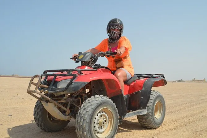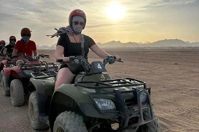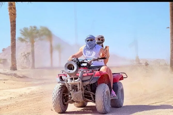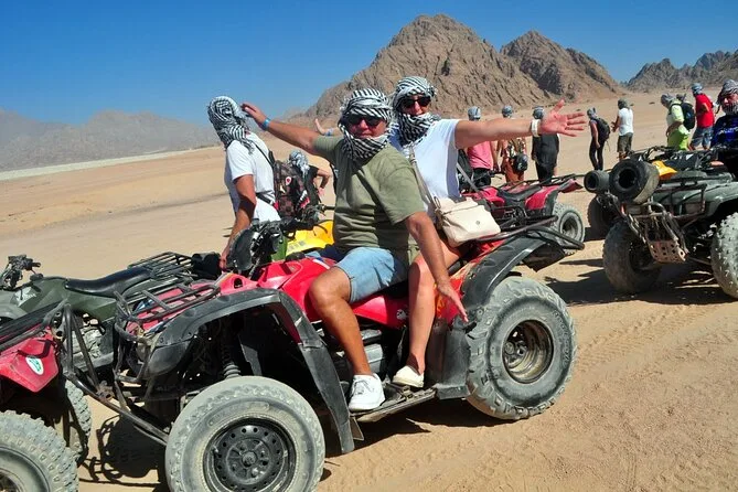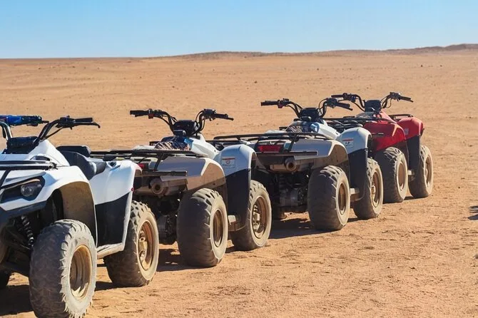 Il tuo giorno include pick-up e ritorno in hotel con veicolo climatizzato da qualsiasi punto di Sharm El Sheikh, casco e tutta l’attrezzatura di sicurezza per guidare il quad nel deserto del Sinai (circa 60 minuti di guida), soste alle grotte con eco per provare la tua voce, visita a una tenda beduina con caffè o tè tradizionale servito dai locali, e un breve giro in cammello prima del rientro in comodità.