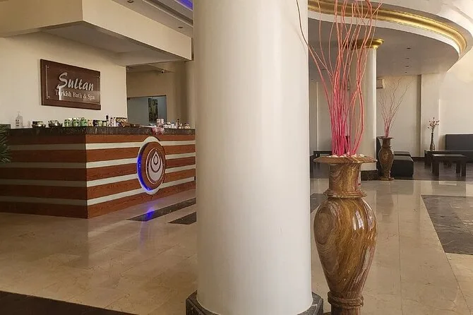 L’esperienza comprende transfer privato andata e ritorno da qualsiasi punto di Sharm El Sheikh, tutti i biglietti e le tasse, accesso a bagno turco e sauna, immersione in Jacuzzi, hammam turco tradizionale con scrub viso e corpo più massaggio schiumogeno, massaggio corpo completo con olio naturale (con maschera viso), asciugamani e ciabattine per il massimo comfort — e si conclude con la scelta tra tè alle erbe o caffè arabo e acqua in bottiglia prima di tornare rigenerati.