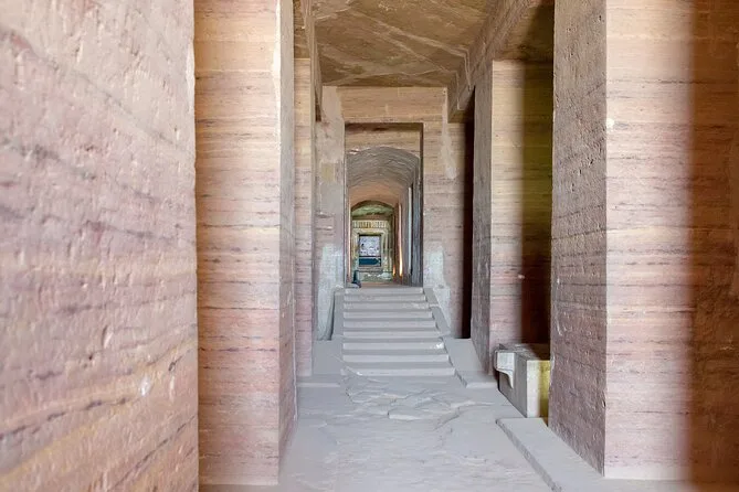 Le Tombe dei Nobili si trovano in cima a una collina rocciosa—42 tombe scavate direttamente nella pietra, alcune risalenti all’epoca faraonica, altre al periodo di dominazione greca. Abbiamo salito una lunga scalinata (si sentiva ogni gradino!) ma ne valeva la pena per quei primi scorci all’interno. La nostra guida ci ha indicato le scene dipinte sulle pareti—la vita quotidiana, i rituali, persino colori sbiaditi che dopo tutti questi secoli sembrano ancora leggermente rosati. Abbiamo visitato tre tombe: Mekho e Sabini, Siranbout 1 e Siranbout 2. Ognuna aveva la sua storia, che la guida ci ha raccontato con vera passione.