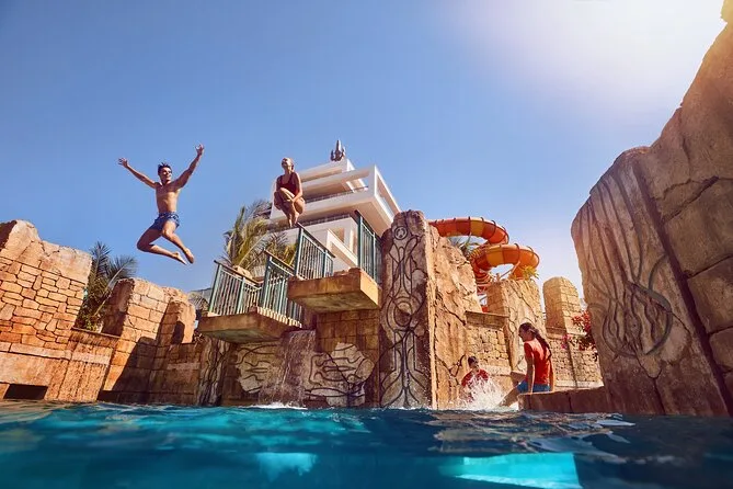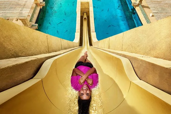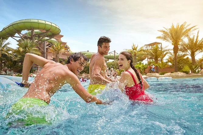 Il tuo giorno include l’ingresso all’Aquaventure Waterpark di Dubai con accesso illimitato a tutti gli scivoli e attrazioni — compresa la macchina delle onde Surf’s Up — e se scegli il biglietto combo, anche l’ingresso a The Lost Chambers Aquarium; giubbotti di salvataggio per bambini sono disponibili, ma il trasporto non è incluso, quindi organizza bene il viaggio.