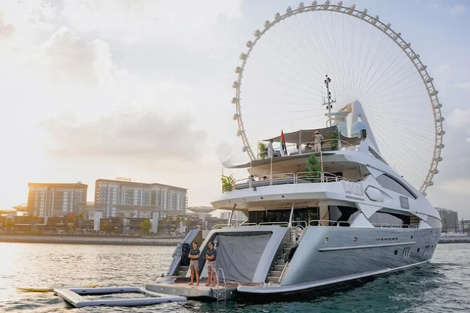 “Hai mai provato il sushi mentre navighi davanti al Burj Al Arab?” mi ha chiesto Samir appena saliti a piedi nudi sul ponte — niente scarpe a bordo, una regola che all’inizio sembrava strana ma poi è stata liberatoria. Lo yacht, Encore, era più grande di quanto immaginassi e si sentiva un leggero ronzio dai motori che si mescolava a risate e brindisi. Prima ancora di lasciare Dubai Harbour, nell’aria si sentiva un profumo deciso e dolce — forse yuzu? — che arrivava dalla cucina. Continuavo a guardare lo skyline, distratto dalle mille luci.