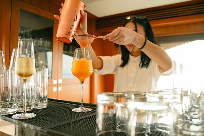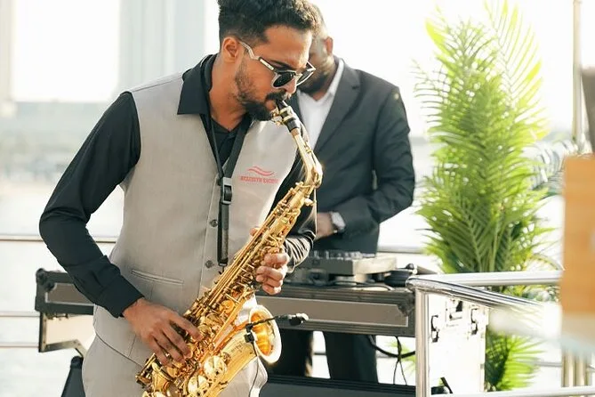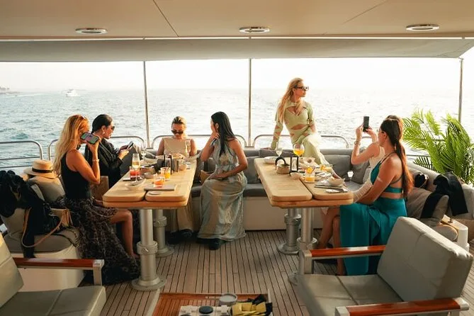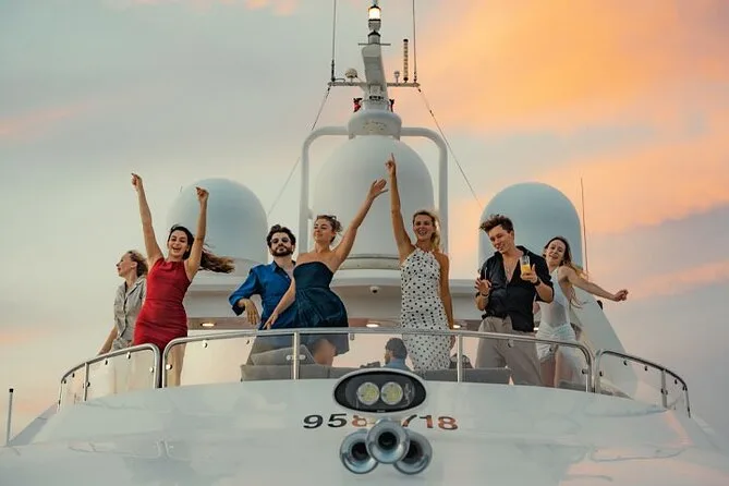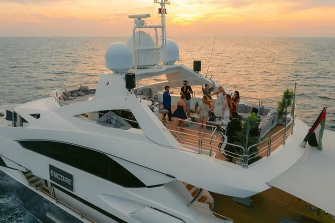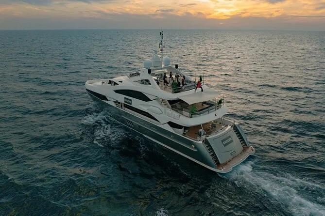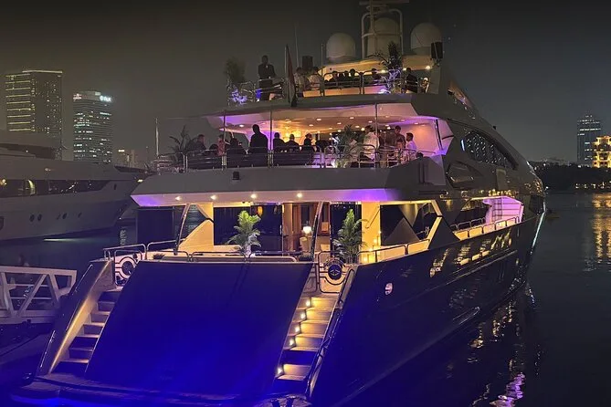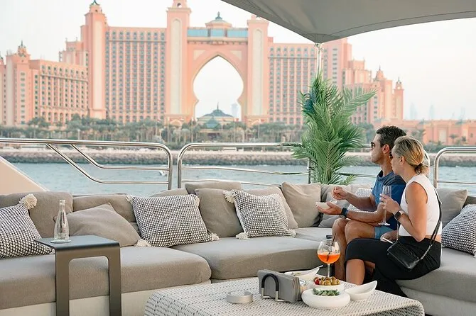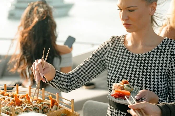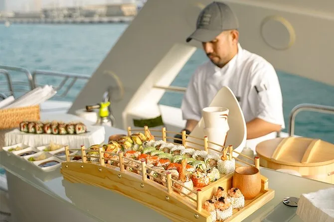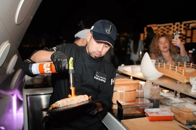La tua serata include tre ore a bordo di un lussuoso superyacht Sunseeker con cocktail e bevande premium a volontà, un menù omakase di sushi in continua evoluzione preparato da uno chef maestro, assaggi gourmet, shisha elettrica se vuoi, asciugamani e ciabatte (scarpe vietate), più musica dal vivo con DJ mentre navighi davanti ai luoghi più iconici di Dubai come Burj Al Arab e Palm Jumeirah.