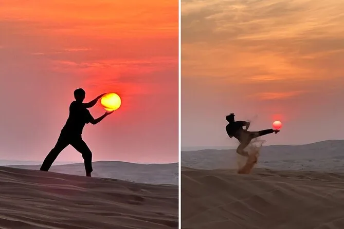 Lascerai Dubai alle spalle per una mattinata tra le dune rosse di Al Madam, cavalcando cammelli, provando il sandboarding (sì, ti sporcherai di sabbia) e aggrappandoti forte durante il dune bashing con una guida locale. Preparati a ridere, avere le scarpe piene di sabbia e vivere qualche momento di silenzio in mezzo al deserto infinito.