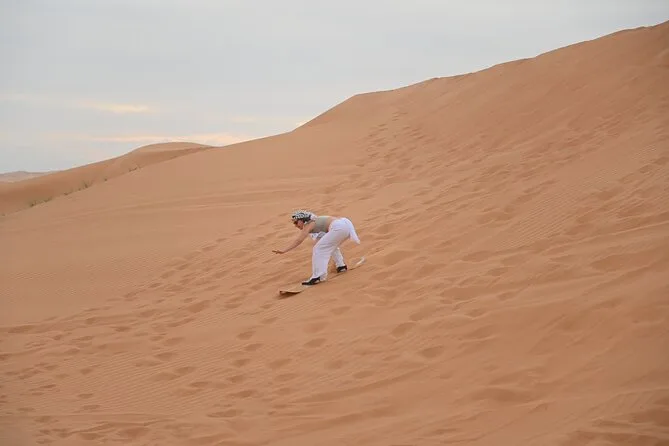 La tua giornata include il comodo pick-up dal tuo hotel a Dubai con un 4x4 climatizzato guidato da una guida locale esperta; il trasferimento alle dune rosse di Al Madam; una cavalcata sul cammello di 20 minuti; 30-45 minuti di emozionante dune bashing; tempo per il sandboarding sulle dune più alte; soste fotografiche nel cuore del deserto; un brunch; accesso a bagni puliti al campo; e, se vuoi, giri opzionali in quad per un’ulteriore scarica di adrenalina prima di tornare in città.