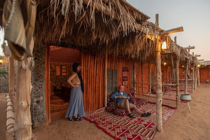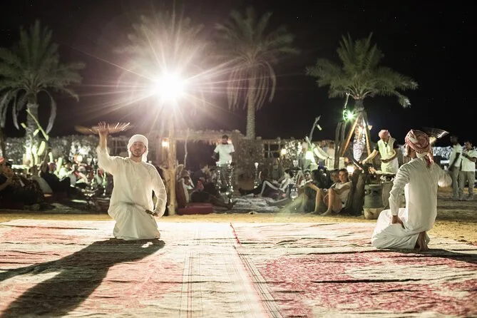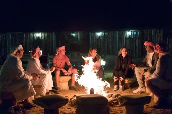 La tua esperienza include il pick-up e il ritorno in hotel con veicolo climatizzato a Dubai, l’ingresso alla Dubai Desert Conservation Reserve con safari in Land Rover d’epoca guidato da una guida locale, lo spettacolo di falconeria al tramonto, un kit di benvenuto con copricapo tradizionale (Sheila/Ghutra), giri in cammello, tatuaggi all’henné, dimostrazioni dal vivo di preparazione del pane e del caffè in un campo beduino illuminato da torce, una cena emiratina di 4 portate sotto le stelle con spettacoli culturali come tamburi e danza Yola, il pernottamento in abitazioni arabe di pietra con biancheria (senza docce), e una colazione gourmet all’aperto prima del rientro in hotel.