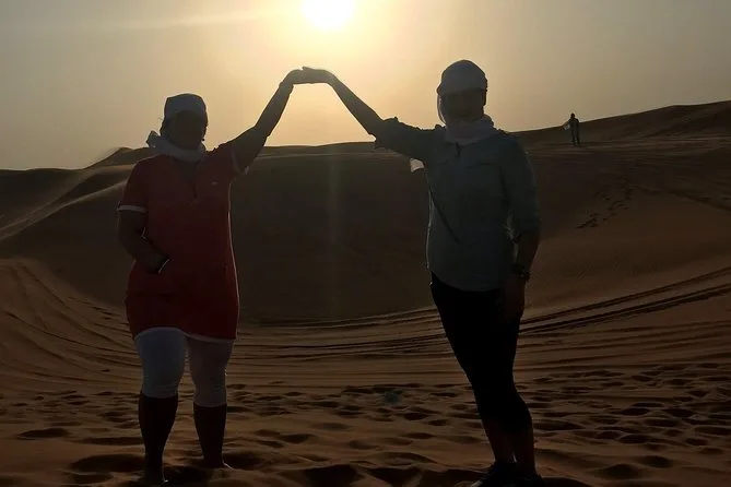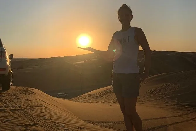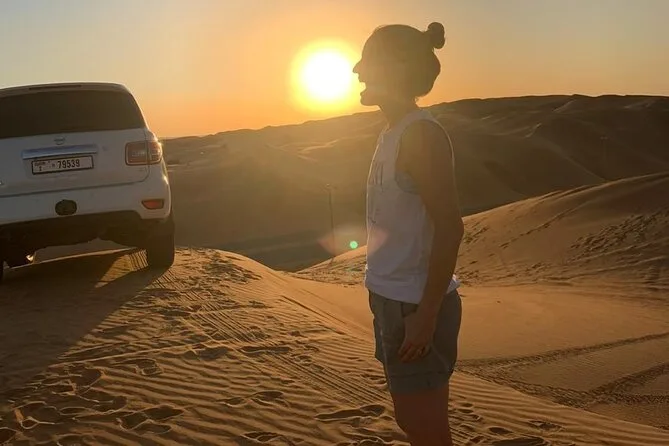 Sentirai il cuore battere forte mentre il 4x4 scala le dune rosse di Dubai al tramonto, proverai il sandboarding (sì, potresti cadere), cavalcherai un cammello sotto il cielo aperto e ti rilasserai con sapori di BBQ e musica dal vivo in un campo illuminato da lanterne. Ogni attimo è più grande di quanto immagini, soprattutto quel silenzio dopo il tramonto.