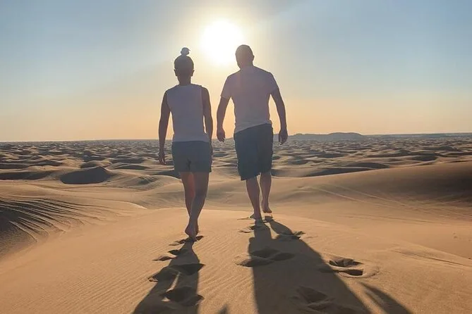Kareem ha sorriso prima di farci scendere dalla duna più ripida — tutti hanno urlato o fatto il tifo (io ho fatto entrambe le cose). La parte di sandboarding è stata esilarante; sono caduto due volte prima di capire come mantenere l’equilibrio. La sabbia era ovunque — nelle calze, tra i denti, persino nelle orecchie. Poi c’è stato quel momento di pausa in cui siamo rimasti fermi a guardare il sole calare dietro le dune. Ha tinto tutto di un arancio ramato per circa cinque minuti. Qualcuno mi ha passato una bottiglia d’acqua che sembrava più fresca del solito, probabilmente per il caldo e tutta quell’adrenalina.