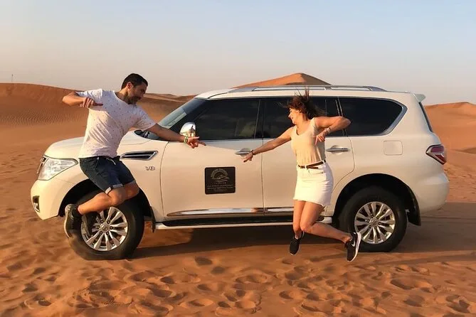 Il tuo giorno include pick-up e drop-off da hotel di Dubai o porto crociere; un emozionante giro di 45 minuti in 4x4 sulle alte dune rosse; acqua in bottiglia illimitata durante l’avventura; sandboarding sulle dune illuminate dal tramonto; una tranquilla cavalcata sul cammello; ingresso in un campo tradizionale nel deserto con lanterne; shisha e tatuaggi henné professionali; acqua e bibite illimitate al campo; e una cena BBQ a buffet con opzioni vegetariane e non, prima del rientro serale.