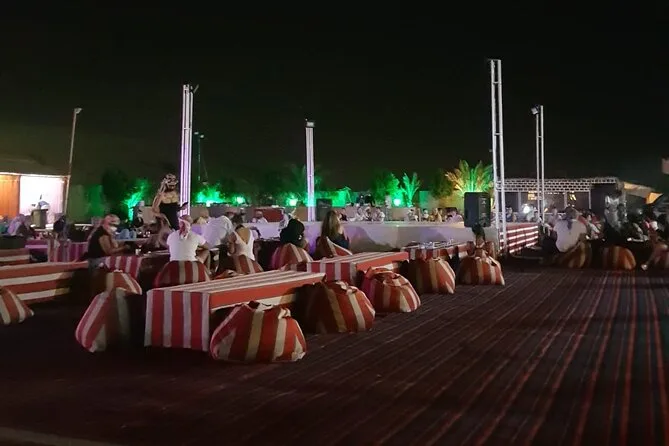 Avrai un giro in 4x4 sulle dune, sandboarding, cavalcata sul cammello, pittura con henné, shisha al campo, cena a buffet e spettacolo dal vivo.