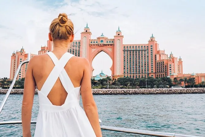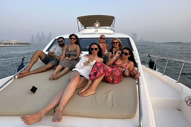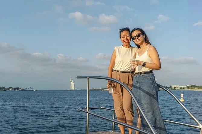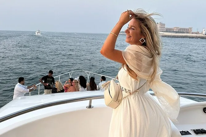 Sentirai la città svanire salendo su uno yacht al tramonto da Dubai Marina—piedi nudi sul ponte, drink in mano, con lo skyline che si illumina intorno a te. Scatta foto ad Ain Dubai, rilassati vicino al Burj Al Arab con musica e snack inclusi, e lascia che la guida si occupi di tutto mentre guardi il sole calare sul Golfo.