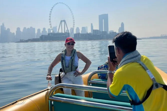 Sentirai l’energia di Dubai cambiare mentre sfrecci lungo la costa su un gommone RIB, ammirando da vicino Palm Jumeirah, Burj Al Arab e Atlantis con una guida locale che ti racconta storie che non troverai online. Aspettati risate, vento salato, soste fotografiche a icone come Ain Dubai — e quei piccoli momenti che ti restano nel cuore.