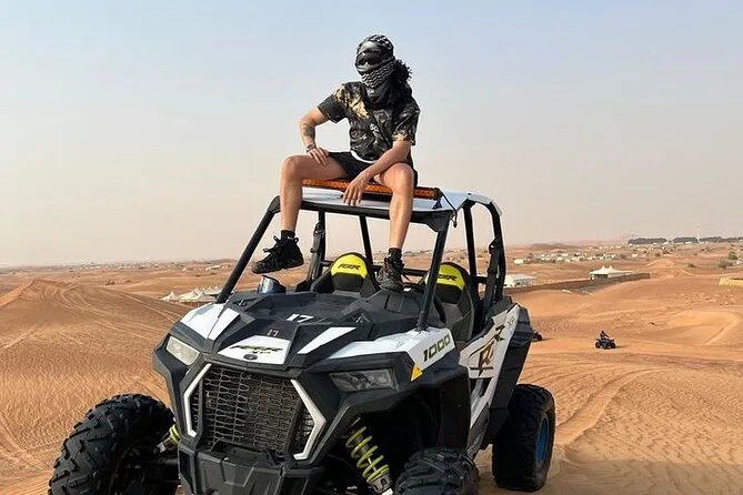 La giornata include trasporto privato in un comodo Land Cruiser o Patrol dal tuo hotel o residenza a Dubai, tutte le attività come dune bashing con autista esperto, un’ora intera sul tuo dune buggy (o più se scegli l’upgrade), sessioni di sandboarding, giri sul cammello con abiti tradizionali per le foto, pittura henné gratuita per un tocco in più — e per rilassarti c’è la shisha insieme ad acqua e bibite illimitate. La cena è un buffet internazionale con opzioni BBQ (vegetariane e non), seguita da spettacoli di danza del ventre, Tanura, fuoco e altro prima del ritorno privato a casa.