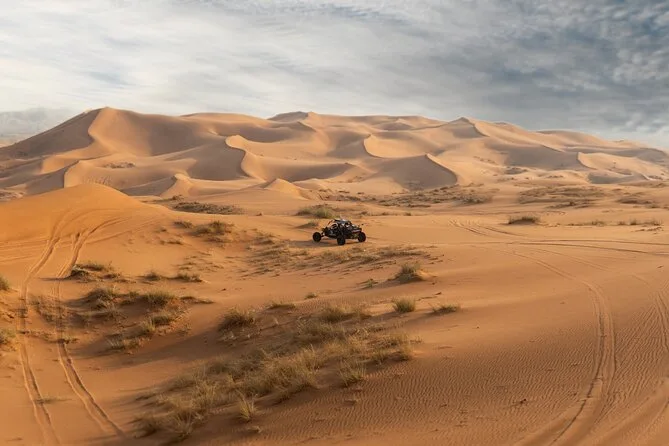 Il tuo giorno include il pickup in hotel con veicolo climatizzato, tutte le tasse d’ingresso già pagate, acqua e bibite per rinfrescarti durante il percorso, un’ora di guida autonoma con il dune buggy Desert Fox tra le dune di Mleiha con supporto completo delle guide locali, una passeggiata tra rocce e fossili antichi a Fossil Rock, tempo per il sandboarding vicino a Camel Rock (non preoccuparti se cadi), e un tranquillo giro in cammello a Zerzura prima di tornare al punto di partenza.
