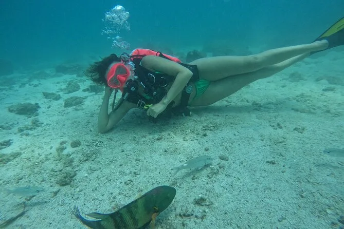 Dopo essere riemersi, abbiamo scambiato racconti durante un leggero pranzo BBQ proprio sulla spiaggia—spiedini di pollo alla griglia e bibite fresche avevano un sapore speciale quando sei salato e scaldato dal sole. Qualcuno del team ha scattato foto sott’acqua per noi (i miei capelli erano esilaranti). Abbiamo concluso con un po’ di snorkeling rilassato; onestamente, è stato difficile lasciare l’acqua.