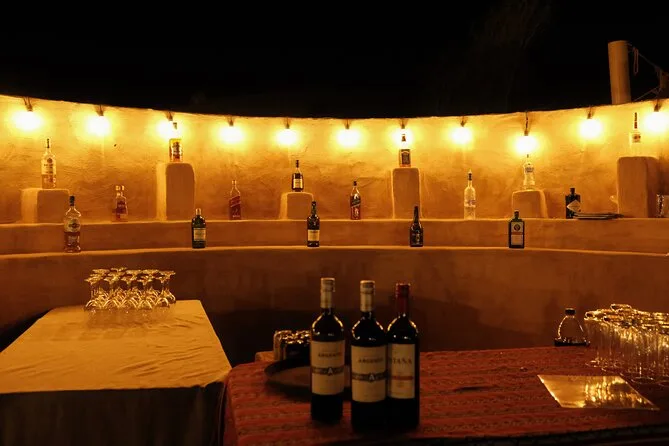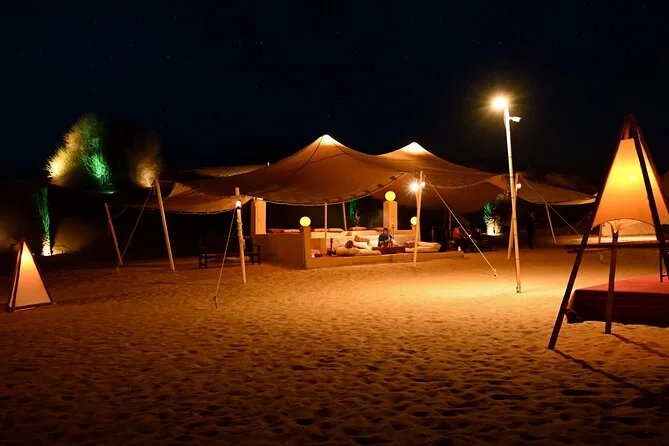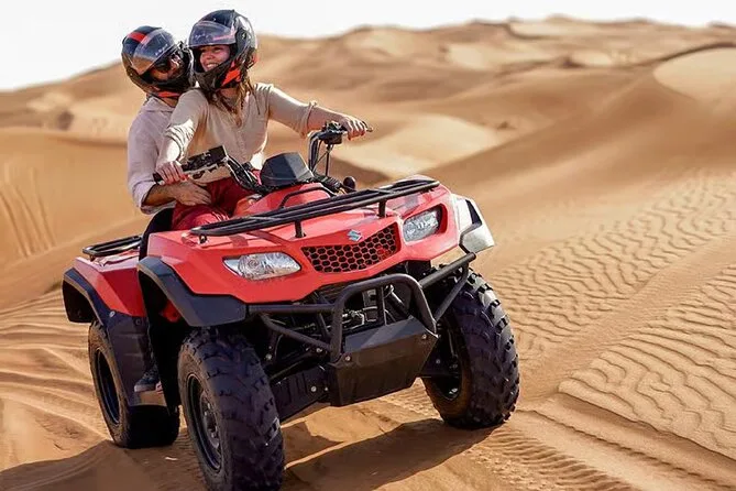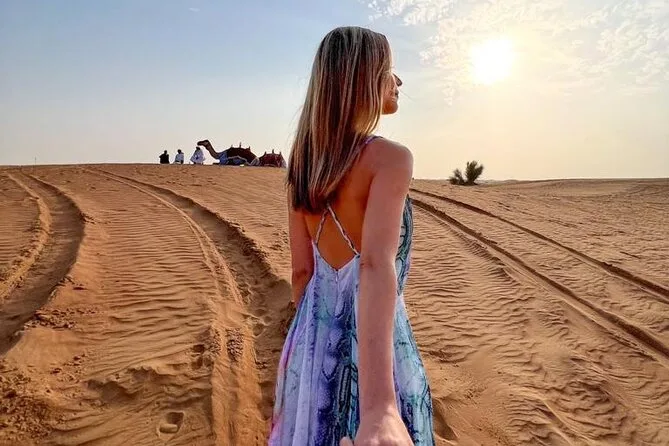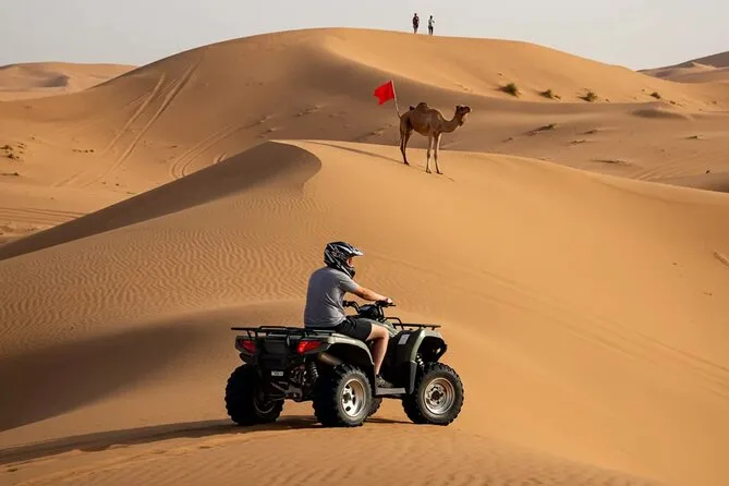 Il tuo giorno include il pick-up e il ritorno in hotel a bordo di un 4x4 climatizzato per il dune bashing, prima di arrivare al Caravanserai Bedouin Camp. Qui sarai accolto con caffè arabo e datteri, potrai provare il giro in cammello o il quad (opzionale), incontrare un falconiere per qualche foto, farti decorare con l’henné da artisti locali, fare un po’ di shopping in qualche bancarella del souk arabo se ti va, e infine goderti un banchetto di lusso con piatti internazionali e mediorientali mentre assisti a spettacoli dal vivo sotto il cielo del deserto, prima di tornare in hotel a tarda sera.