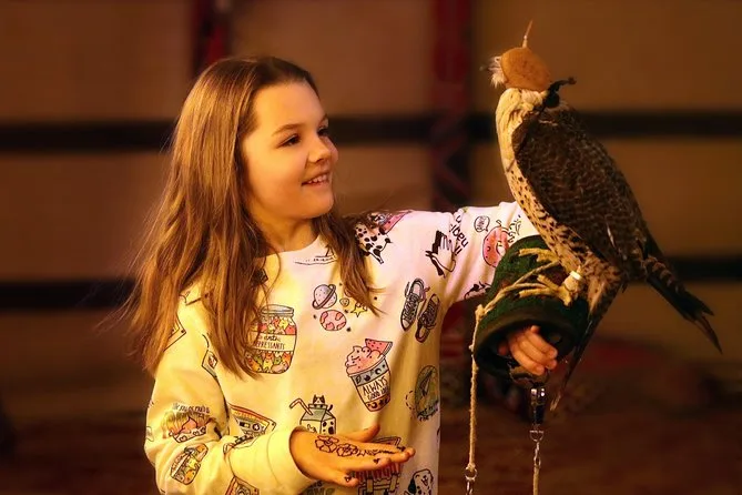 Al campo Caravanserai tutto si è calmato. C’era un vero e proprio rituale di benvenuto: acqua di rose sulle mani, tazzine piccole di caffè arabo dal sapore intenso e affumicato (probabilmente ne ho bevute troppe), e datteri così appiccicosi da incollarmi le dita. Un falconiere locale ci ha fatto tenere il suo uccello — ero un po’ nervoso ma lui ha solo annuito dicendo “gentile”, così ho cercato di fare il coraggioso per la foto. Le piume del falco erano più morbide di quanto immaginassi. Qualcuno vicino rideva in arabo; ho capito forse tre parole, ma mi sono sentito comunque parte del momento.
