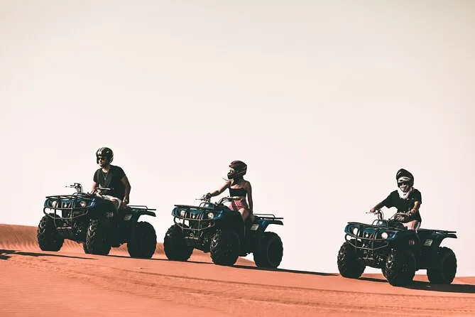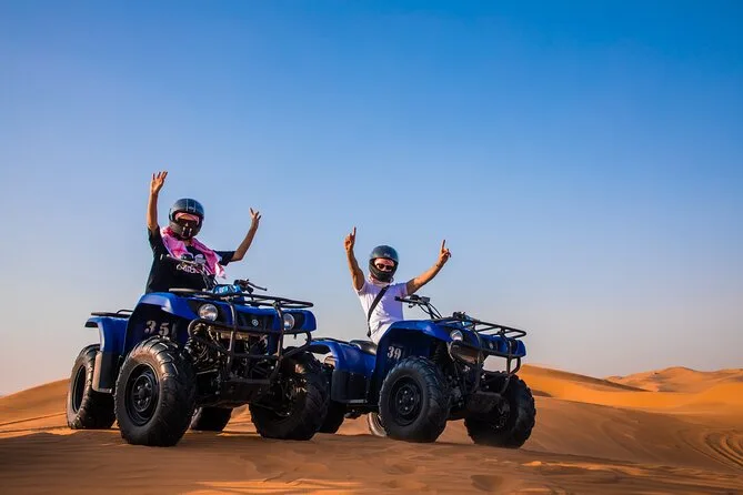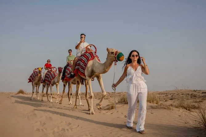 Sentirai il deserto di Dubai risvegliarsi intorno a te in questo safari di mezza giornata: sorseggia caffè arabo in una tenda climatizzata, sfreccia sulle dune in 4x4 e quad, prova il sandboarding (cadere è parte del divertimento). Cavalca cammelli con una guida locale e rilassati con datteri e tè — un mix di emozioni e calma sorprendente.
