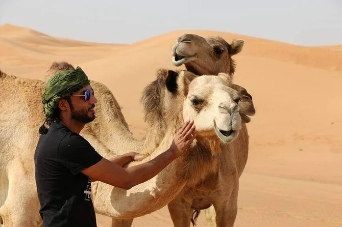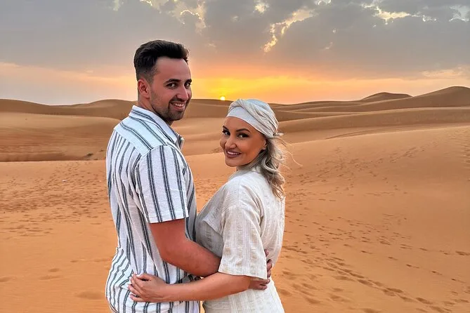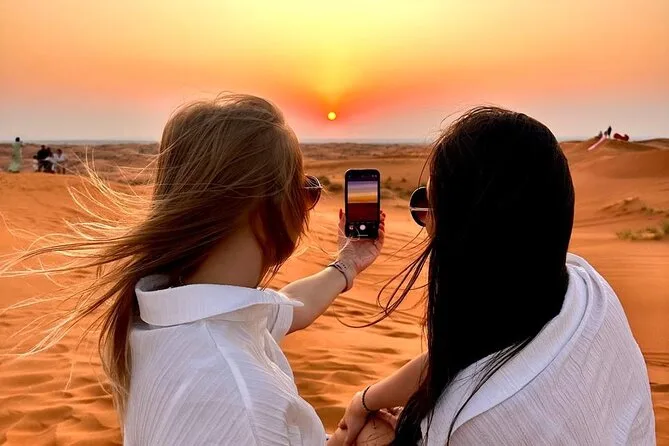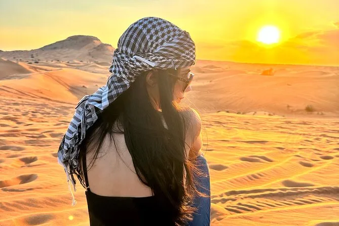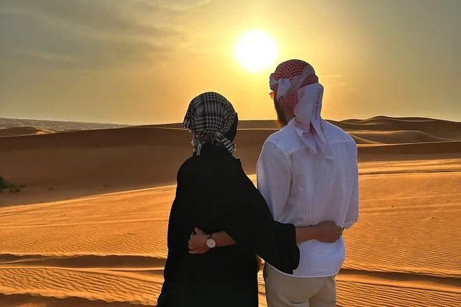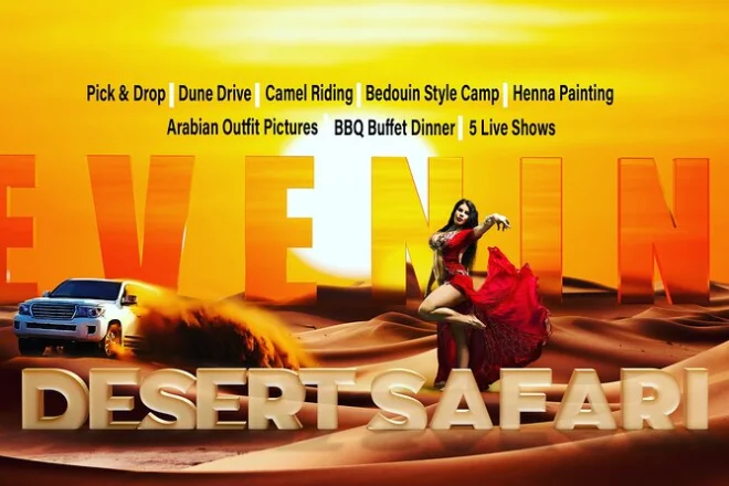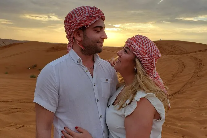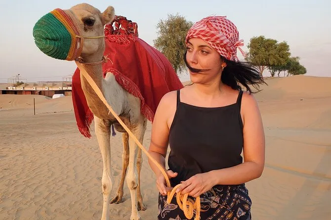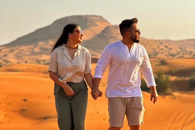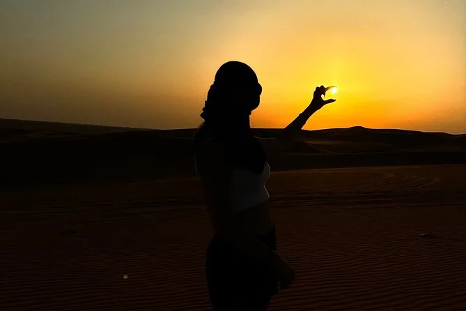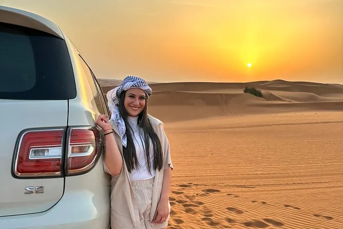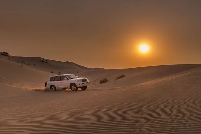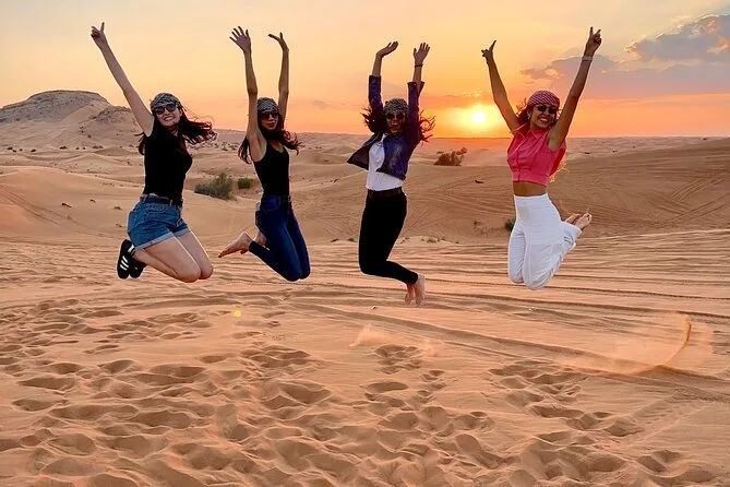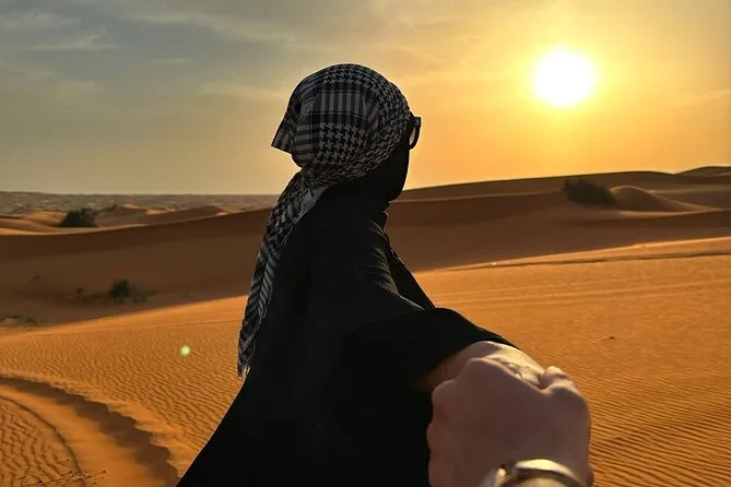 La tua giornata include il pickup e il rientro da hotel o location a Dubai, 30 minuti di dune bashing in 4x4, attrezzatura per sandboarding fornita sul posto, un tranquillo giro in cammello tra le dune, accesso a costumi arabi tradizionali per foto o divertimento, tatuaggi all’henné al campo, posti VIP per la cena sotto le stelle con BBQ dal vivo e insalate, più intrattenimento serale con spettacoli di danza locale prima di tornare rilassati (e probabilmente un po’ sabbiosi) in hotel.