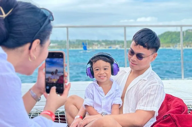 La giornata comprende quattro ore a bordo di un party yacht lungo la costa di Boracay con soste ad Angol Beach e Puka Beach per snorkeling o sport acquatici—tutta l’attrezzatura è fornita—oltre a snack illimitati come pika-pika e cup noodles, cocktail e mocktail serviti da un equipaggio amichevole (e sì, c’è anche una babysitter a bordo se porti i bambini).
