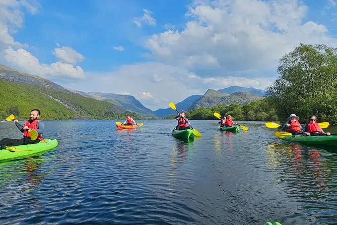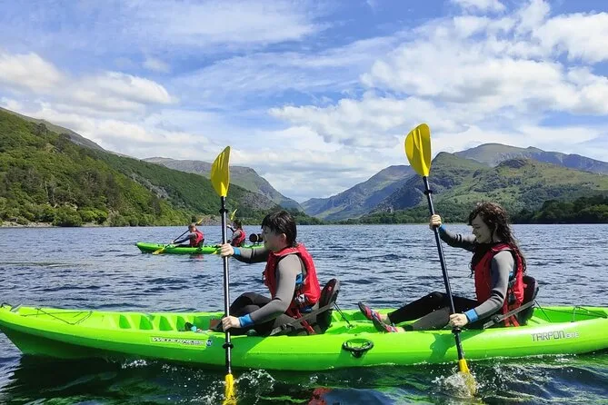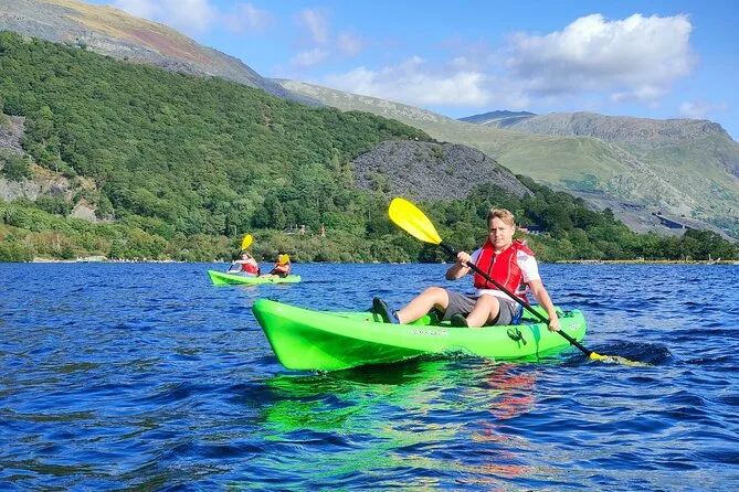 Il tuo giorno include l’uso di kayak, mute, pagaie e giubbotti salvagente—con alcune scarpe da acqua disponibili—e la guida di un esperto locale prima di partire insieme sul Llyn Padarn.