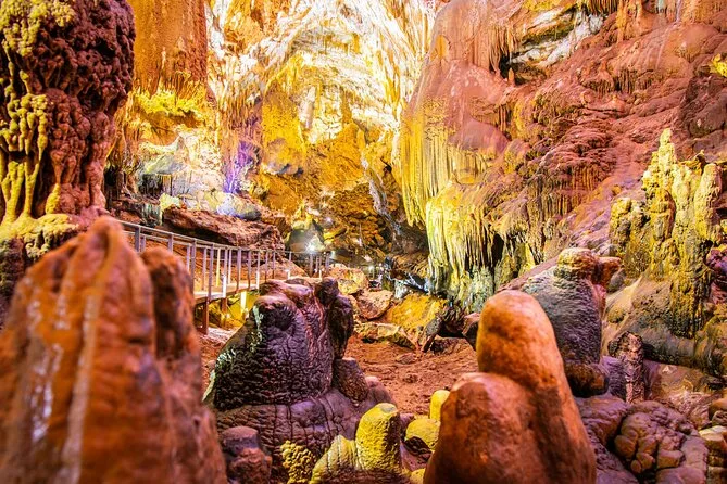 La tua giornata include il pickup in hotel a Tbilisi, un trasporto comodo attraverso la Georgia occidentale, l’accompagnamento di guide locali come Giorgi e Nino, e l’ingresso a Martvili Canyon (con opzione barca) e alla Grotta di Prometeo, prima del ritorno al punto di drop-off scelto.