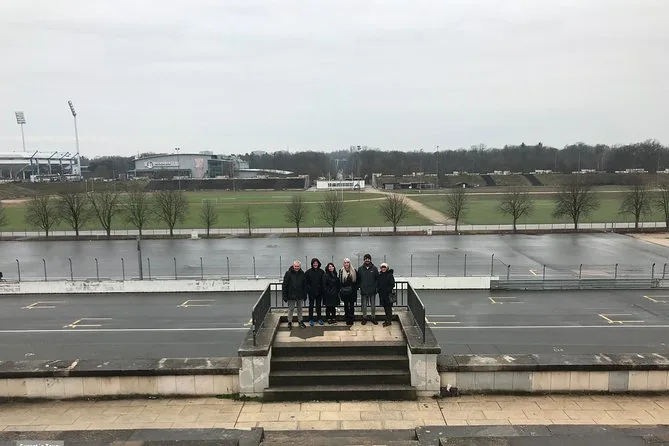 Dopodiché siamo andati verso il bordo sud-est di Nürnberg — ci vogliono solo una quindicina di minuti, ma sembra di passare da un mondo a un altro. I Campi di Raduno del Partito Nazista sono enormi, davvero difficili da immaginare. Martin ci ha guidati oltre pietre cadenti che sembravano quasi romane (ci ha spiegato l’ossessione di Speer per la grandiosità antica), e ricordo quanto freddo tirasse il vento su quel vuoto Zeppelinfeld. Siamo saliti sulla tribuna dove Hitler parlava; ora è cemento crepato, con erbacce che spuntano ovunque. Qualcuno del gruppo ha provato a immaginare la folla — io non ci riuscivo, ma sentivo lontano il fischio di un treno che rimbalzava in tutto quel spazio.