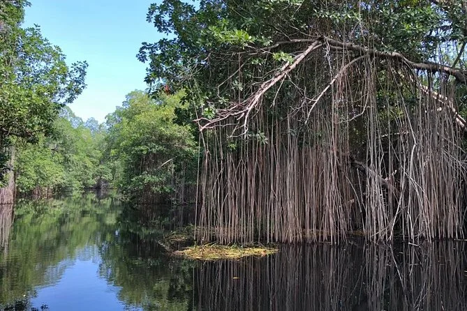 Dopo essermi asciugato (e aver preso un patty veloce da una bancarella vicino all’ingresso), siamo andati al Black River per il safari in barca. La guida qui era davvero esperta—ci ha mostrato i coccodrilli che si scaldavano al sole sulle rive fangose e ci ha spiegato come le mangrovie proteggano questa zona della Jamaica dalle tempeste. La barca scivolava silenziosa; a volte si sentivano solo i richiami degli uccelli o uno splash quando qualcosa cadeva in acqua. Al ritorno ci aspettava il pranzo—semplice ma gustoso: jerk chicken, riso e piselli, e una fresca soda Ting.