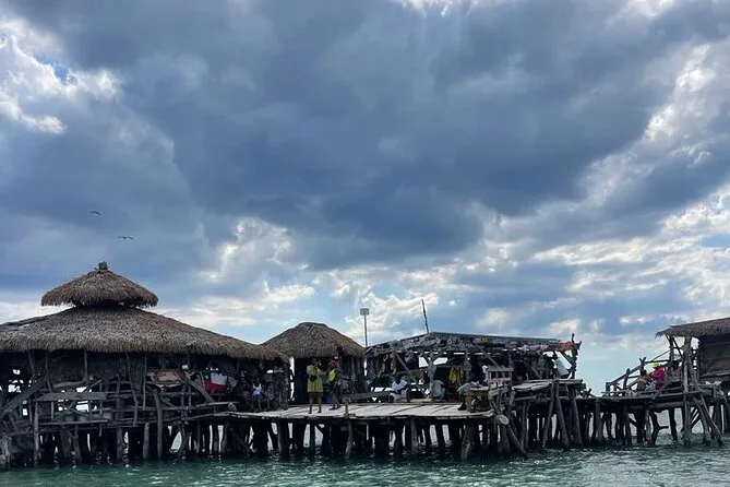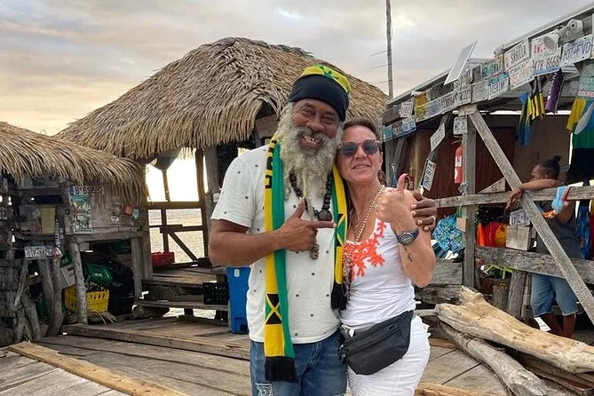 Ultima tappa: Pelican Bar. È davvero un posto unico—una capanna di legno su palafitte in mezzo a un’acqua bassa e turchese. Abbiamo preso un’altra barca per circa dieci minuti; la brezza salata mi ha sfiorato il viso e sentivo il sapore sulle labbra. Al bar si ascoltava reggae in sottofondo mentre la gente si rilassava con una Red Stripe o un’acqua di cocco fresca. Lo staff era tranquillo ma sempre attento a far salire e scendere tutti in sicurezza. Se sei fortunato puoi vedere i pellicani volare vicino, oppure semplicemente goderti i pescatori che tirano su il pescato mentre la luce del pomeriggio tinge tutto d’oro.