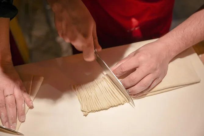 Strano come il profumo del brodo di maiale che sobbolle ti faccia sentire subito a casa, anche se sei appena arrivato a Kyoto da un’ora. Ci siamo infilati in una piccola cucina, lasciandoci alle spalle la strada trafficata e la pioggia ancora sulle giacche, dove lo chef Sato rideva già dicendo che “le prime tagliatelle di tutti sembrano sempre buffe”. Eravamo in cinque, con le maniche rimboccate e la farina sparsa sul tavolo. Non avevo mai impastato la pasta per ramen prima: è più appiccicosa di quanto pensassi, quasi elastica sotto le mani. Sato ci ha mostrato come tagliare le tagliatelle sottili (le mie... non proprio sottili), ma ha sorriso e ha detto “stile fatto in casa!”, facendomi rilassare subito.