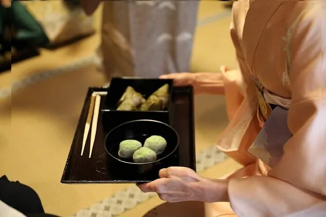 I dolci sono arrivati prima del tè—delicati, stagionali, che si scioglievano in bocca prima ancora che capissi il sapore. Seduta lì con il kimono in prestito, condividendo il silenzio con degli sconosciuti (e un bambino locale che rideva e ci seguiva), mi sono sentita stranamente a casa. Non so perché quel momento mi sia rimasto così impresso—forse perché era semplice, senza fretta e senza che nessuno cercasse di venderti qualcosa in più. Solo una vera cerimonia del tè a Kyoto, con tutti i suoi piccoli dettagli e le pause dolci.