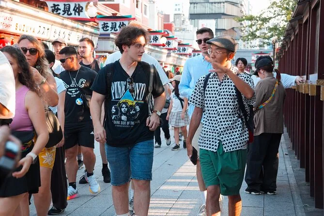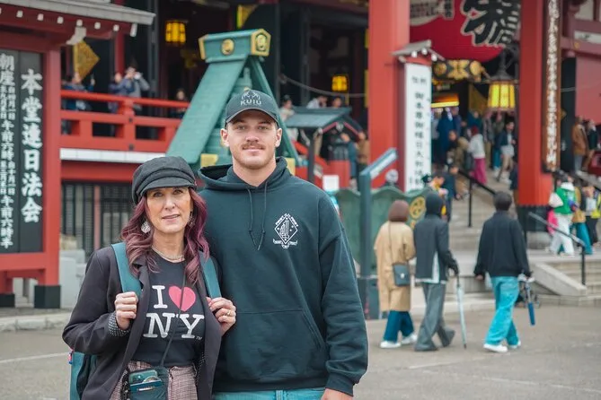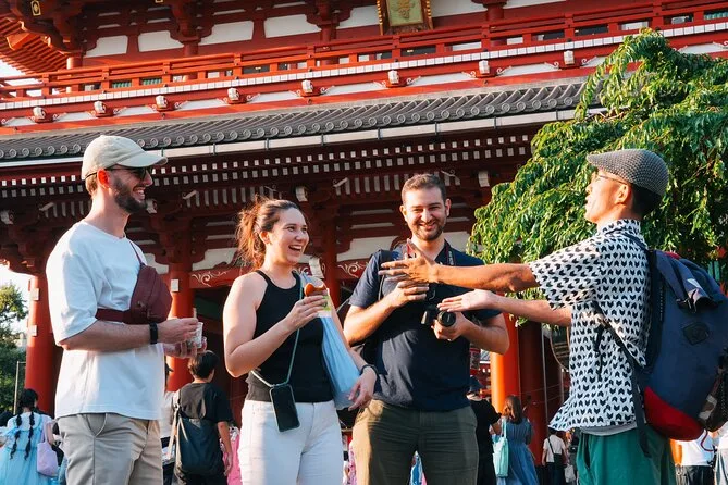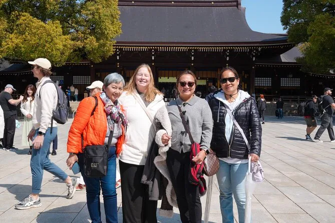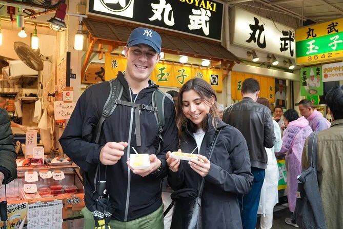 La mattina include ingresso guidato al Meiji Jingu Shrine e al tempio Senso-ji, tanto tempo per esplorare il mercato Tsukiji con degustazioni di sushi o sashimi e cibo di strada locale come mochi e crocchette—tutto con una guida in inglese che racconta storie lungo il percorso. Sono incluse anche le foto scattate durante il tour come ricordo.
