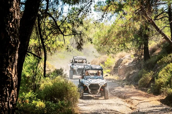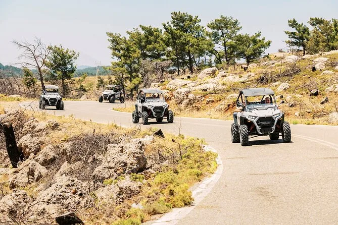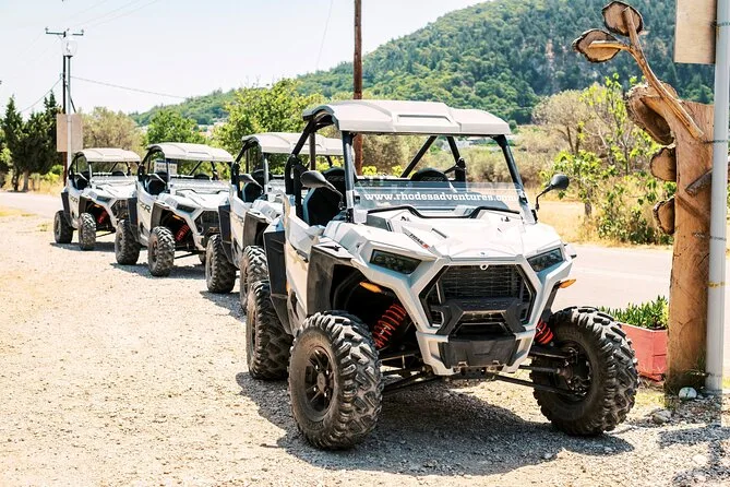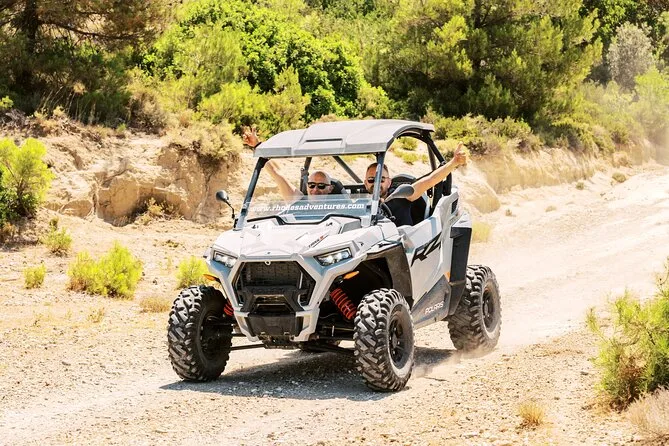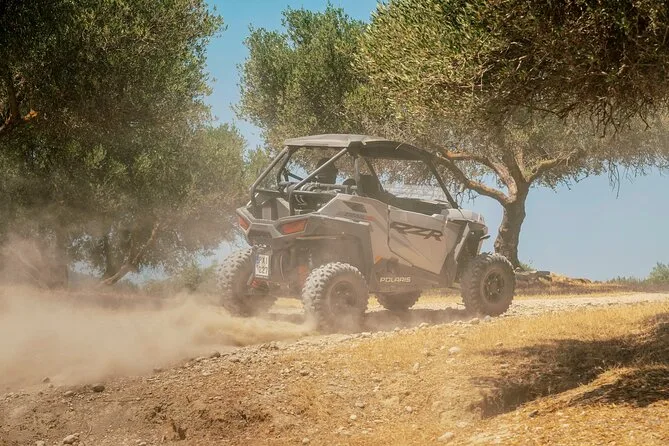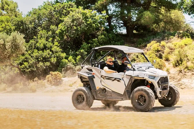 Il tuo giorno include l’uso di un buggy Polaris RZR Trail S 1000cc (per due persone), la guida di un esperto locale che ti accompagna lungo i sentieri nascosti di Rodi, più una sosta degustazione con prodotti tipici e frutta fresca. Se serve, puoi organizzare il transfer da hotel o porto dopo la prenotazione.