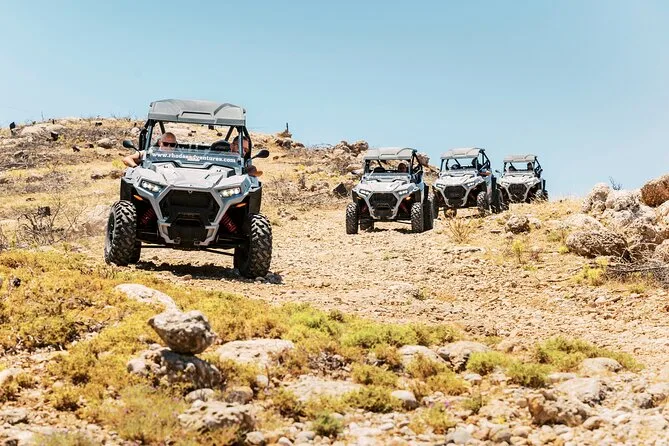 Vivi il lato selvaggio di Rodi a bordo di un buggy Polaris 4x4 con una guida locale. Curve strette, sentieri baciati dal sole, formaggi salati e melone dolce in una sosta degustazione, più tante risate con il tuo piccolo gruppo. Se vuoi sentire il vento in faccia e scoprire angoli di Rodi che pochi vedono, questo è il tour che fa per te.