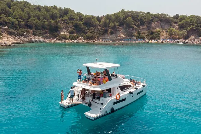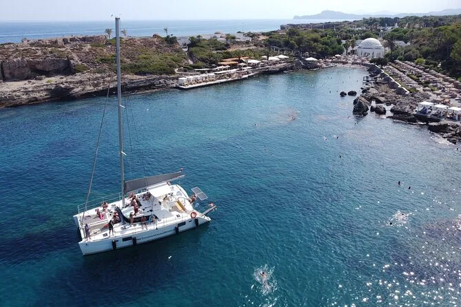 Salpa da Rodi verso la Baia di Anthony Quinn, con soste per nuotare in acque cristalline e un pranzo mediterraneo ad Afandou Beach. L’attrezzatura per lo snorkeling è inclusa per esplorare le grotte sottomarine. Con un equipaggio amichevole e tante bevande fresche a bordo, questa crociera in catamarano ti lascia baciato dal sole e felice — un’esperienza da vivere più che da vedere.
