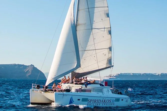 Salpa lungo la costa di Santorini in catamarano con un piccolo gruppo, passando Red & White Beach e nuotando vicino alle sorgenti vulcaniche. Goditi un pranzo BBQ greco con open bar mentre ti rilassi sul ponte. Con il trasferimento dall’hotel incluso, è tutto semplice — porta solo il costume e lasciati cullare per un pomeriggio.