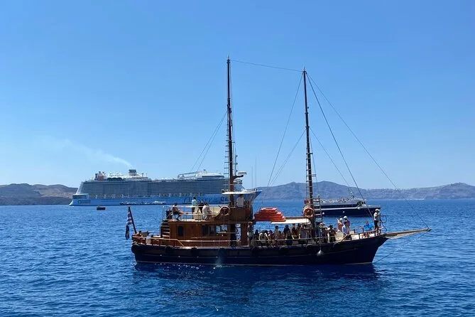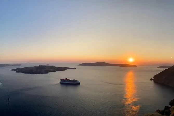 Il tuo giorno include il pick-up vicino all’uscita della funivia di Fira, coordinato con gli arrivi delle crociere, tutti i trasporti in veicolo climatizzato con acqua in bottiglia per ogni partecipante, guida locale esperta in inglese durante tutte le tappe e il rientro garantito alla nave prima della partenza.