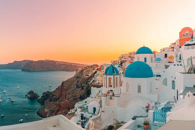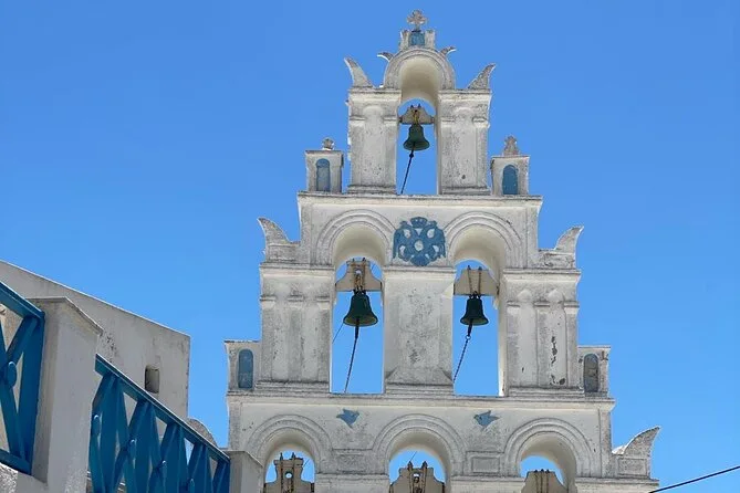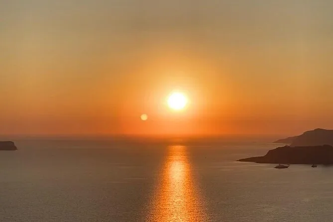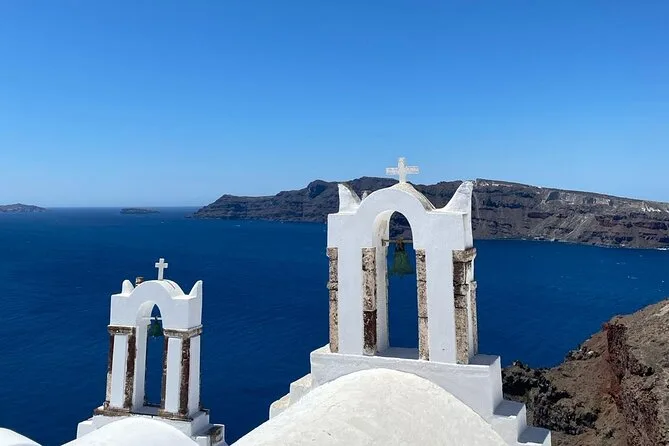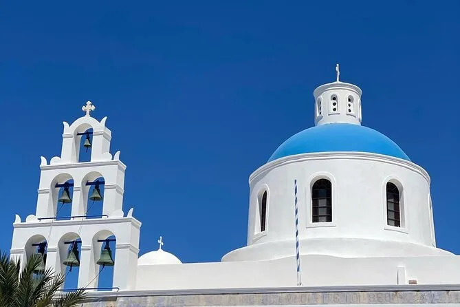 Visiterai Firostefani (cupole blu), il villaggio di Oia, il Monastero di Prophet Elias (se aperto), Megalochori e la spiaggia di Perivolos.