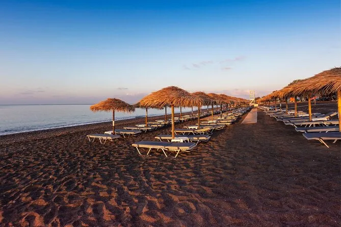 Ultima tappa la spiaggia di Perivolos — sabbia nera che si scalda così tanto da pizzicare i piedi se non si è veloci. Alcuni si sono tuffati, altri si sono rilassati sotto l’ombrellone con una bevanda fresca. Il pranzo non è incluso, ma abbiamo preso un polpo alla griglia in una taverna lì vicino (dita salate e succo di limone ovunque). Durante il viaggio di ritorno ero stanco per il sole ma stranamente soddisfatto — non tutto è andato liscio, ma forse è stato proprio questo a renderlo speciale.