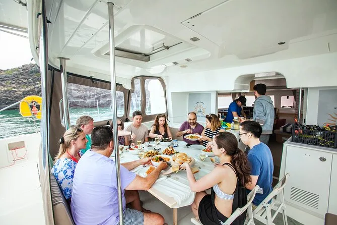 Il tuo giorno include transfer da e per l’hotel a Santorini, asciugamani freschi per le soste in spiagge raggiungibili solo in barca, tutta l’attrezzatura per lo snorkeling, vino locale o birra illimitati più bibite durante la crociera, e un pranzo barbecue cucinato a bordo prima del rientro nel tardo pomeriggio o dopo il tramonto se scegli quell’opzione.