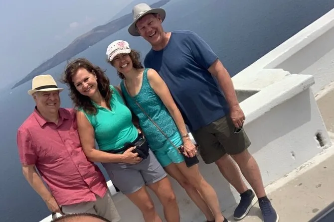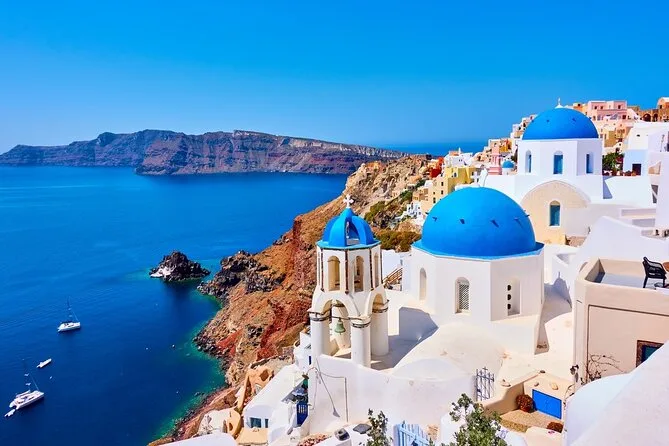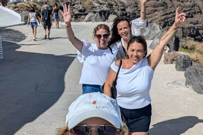 Esplora i villaggi iconici di Santorini con una guida locale, ammira da vicino le cupole blu di Oia, gusta la feta nell’olio d’oliva in una taverna tranquilla, passeggia nei vicoli di Pyrgos, sali al Monastero del Profeta Elia per una vista panoramica e senti la sabbia vulcanica tra le dita alla Spiaggia Rossa — tutto con trasporto privato e tempo per fermarti o ridere lungo il percorso.