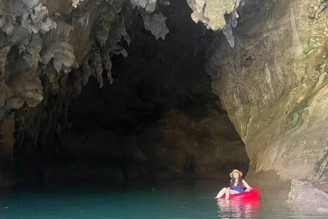 Il tour include camminate nelle grotte, nuoto in piscine naturali e tubing sul fiume sotterraneo.