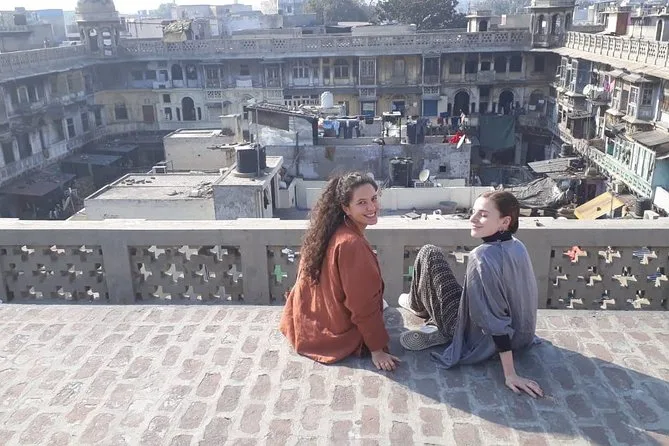 Il tuo giorno include il pick-up a Delhi, un tour guidato a piedi attraverso Chandni Chowk con soste in siti storici e luoghi religiosi come il Gurudwara Sis Ganj Sahib, l’ingresso al più grande mercato delle spezie d’Asia, Khari Baoli, e al terrazzo del Gadodia Market per un masala chai, degustazioni di famosi cibi di strada di Old Delhi, più un giro in risciò tra le vie affollate prima del rientro.