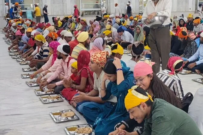 Con una bottiglia d’acqua in mano (fidati, ti servirà), ci siamo diretti al Gurudwara Bangla Sahib. Qui la gentilezza è palpabile: ti offrono dolci prasad e puoi vedere i volontari cucinare in enormi pentoloni per chiunque entri affamato. Il sarovar, lo stagno sacro, brillava sotto il sole di metà mattina, e mi sono ritrovato a sedermi in silenzio per qualche minuto.