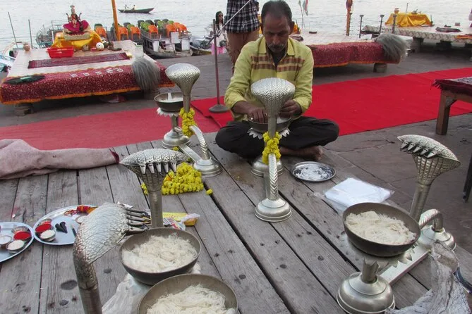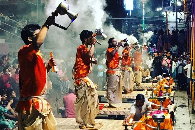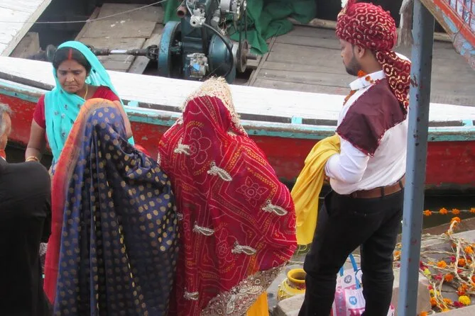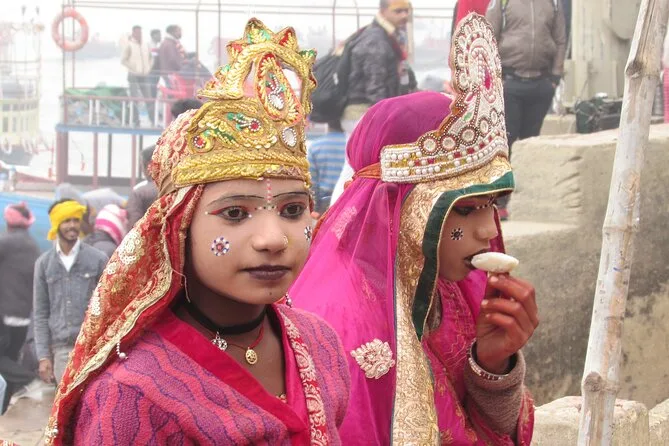 La tua mattinata comprende una passeggiata guidata tra le vie storiche di Varanasi con soste per assaggiare snack locali—kachauri con curry di patate, lassi, chai—e tempo per osservare i rituali spirituali lungo il Gange, per poi concludere vicino ai vivaci bazar.