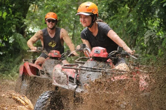 La tua giornata comprende il pickup andata e ritorno dall’hotel se selezionato, tutta l’attrezzatura di sicurezza necessaria come casco e stivali, guide locali esperte che ti accompagnano per circa 1,5 ore tra sentieri nella giungla e villaggi su quad ATV, assicurazione durante tutto il percorso, acqua minerale per restare idratato, accesso a docce e spogliatoi per pulirti dopo il fango, più un pranzo locale gustoso prima di ripartire—o continuare se hai aggiunto il Bali Swing o il tour a Ubud.