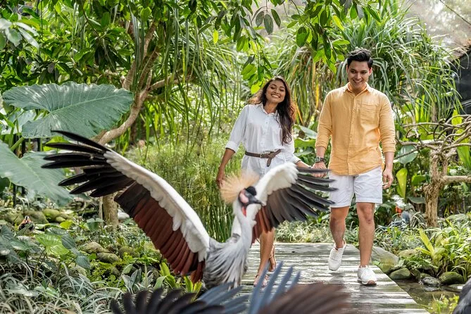 Darai da mangiare ai lorichetti direttamente dalla mano, vedrai da vicino i rari Bali Starling e assisterai agli spettacoli con ara in volo libero al Bali Bird Park. Con accesso tutto il giorno a sessioni interattive, spettacoli e persino un originale film in 4D, camminerai tra giardini lussureggianti accanto a gru coronate e fenicotteri — tornerai con più storie che foto.